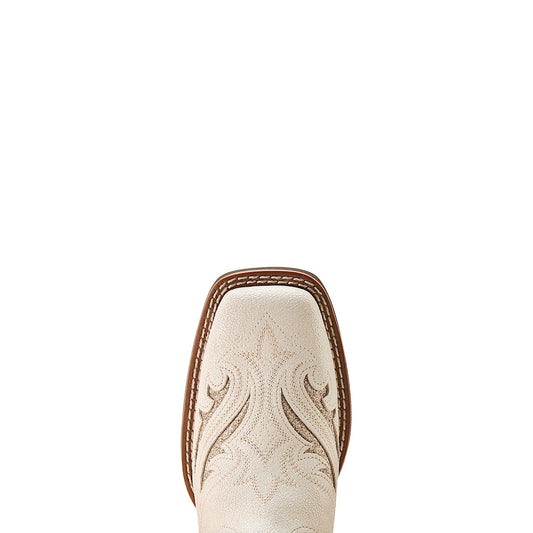 Bota Western Feminina Round Up Bliss – Couro Ivory com Glitter, Bico Quadrado Largo