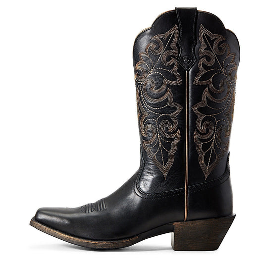 Bota Western Feminina Round Up – Bico Quadrado, Couro Preto Limousine